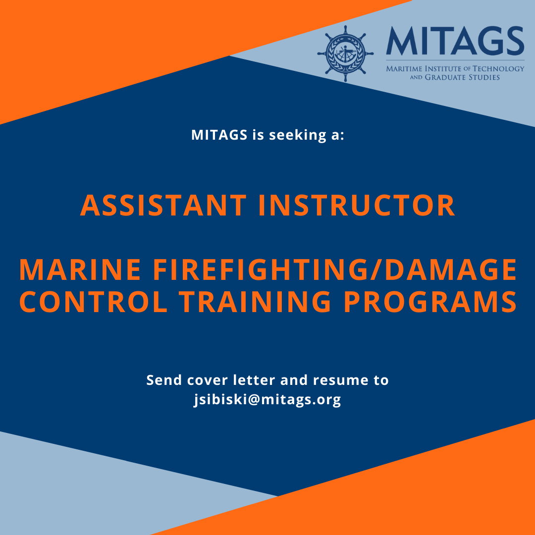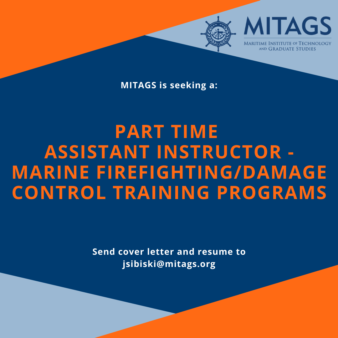 MITAGS is seeking a Part Time Assistant Instructor – Marine Firefighting/Damage Control Training Programs for its West Coast campus! SUMMARY STATEMENT Serve as field instructor for Firefighting/Damage Control Training Maritime and Navy Programs. Provides classroom instruction to students and live fire and damage control training in line with Navy curriculum and USCG approved curriculum. […]