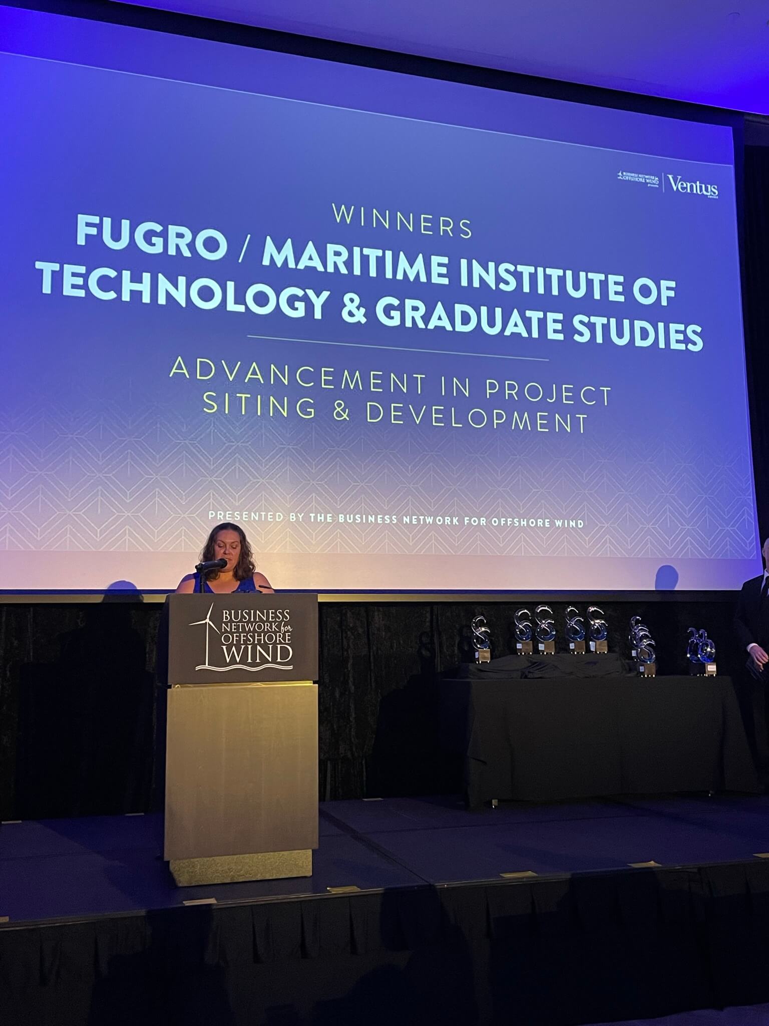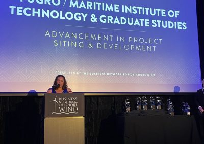 The Advancement in Project Siting & Development Ventus Award was given to an individual, team, or company that developed a technology, process or demonstrated immense effort and collaboration to advance or reduce improve offshore wind project development risk, cycle, or timeline. All categories were voted on by Business Network board members, an Awards Committee, and other jurors. MITAGS was named a finalist for Advancement in Project Siting & Development along with Fugro and Vineyard Wind. A total of ten awards were given for nine various categories throughout the awards event, held at The Schuyler in Washington, D.C.